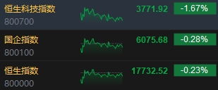 10月18日消息,港股三大指數(shù)齊跌,截至收盤,恒生指數(shù)(17732.52, -40.82, -0.23%)跌0.23%,報(bào)17732.52點(diǎn),恒生科技指數(shù)(3771.92, -64.13, -1.67%)跌1.67%,國(guó)企指數(shù)跌0.28%。盤面上,核心科技股下挫,快手跌近9%,百度集團(tuán)跌近5%,京東集團(tuán)跌超3%;汽車股部分上漲,比亞迪漲近7%;體育用品股漲幅居前,安踏體育(94.25, 3.30, 3.63%)漲近4%;醫(yī)藥板塊表現(xiàn)萎靡,三葉草生物跌超10%;半導(dǎo)體、石油、蘋果概念等板塊飄紅。