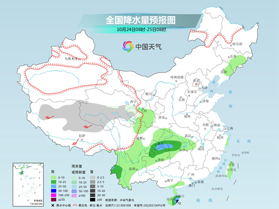 明天,西藏西北部和東部、青海南部、甘肅西南部、黑龍江西北部等地部分地區(qū)有小雪或雨夾雪;貴州中北部、重慶東南部、湖北南部、湖南北部、江西中部、海南島中東部等地部分地區(qū)有中到大雨,其中,湖南北部局地有暴雨(50~80毫米)。