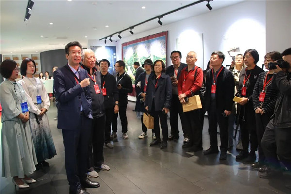 天津市武清區(qū)崔黃口鎮(zhèn)黨委書記張宏瑛(左三)向與會嘉賓介紹“織采宮”藏品