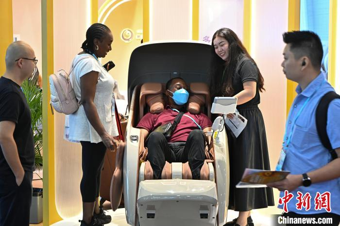 在醫(yī)藥保健品及醫(yī)療器械展區(qū),在山東一家按摩椅生產(chǎn)商的展位上,一款外觀設計感強的按摩椅吸引境外采購商注意?!斑@是我們今年的新品,較市面上其他產(chǎn)品,此款按摩椅具有4D雙機芯,相當于有兩個人同時進行按摩,還具有機芯加熱功能,能更好地舒緩消費者全身壓力?!痹摴酒放平?jīng)理曹麗莉表示,憑借著技術(shù)優(yōu)勢和外觀優(yōu)勢,該公司為國際大公司的按摩椅長期供應配件,產(chǎn)品銷往美國、德國、日本等30多個國家和地區(qū)。