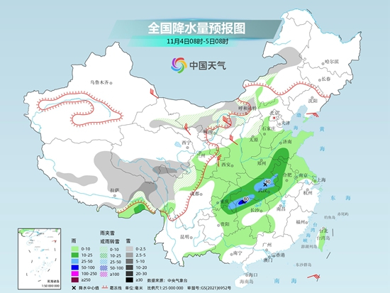 后天,西藏北部和東部、青海南部、甘肅北部、內(nèi)蒙古、川西高原等地部分地區(qū)有小到中雪或雨夾雪;重慶中部和東部、貴州東北部、湖南北部、湖北、安徽西部和北部、河南西部等地部分地區(qū)有中到大雨,其中,湖南西北部等地局地有暴雨。