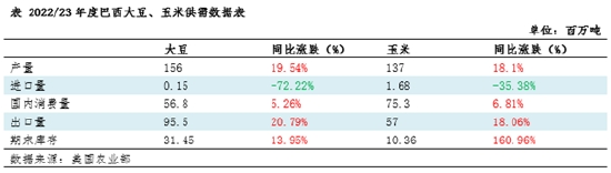 巴西出口能力的下降,或?qū)⒔档?022/23年度巴西增產(chǎn)作物的價(jià)格。從2022/23年度巴西主要作物大豆和玉米(2541, -3.00, -0.12%)的供需數(shù)據(jù)看,產(chǎn)量同比增幅分別為19.54%和18.1%。而從國(guó)內(nèi)消費(fèi)量和出口量的同比增幅看,兩大作物的出口量增幅均大于消費(fèi)量增幅,顯示出增產(chǎn)的壓力將更多通過(guò)出口市場(chǎng)進(jìn)行消化。因此,一旦出口不暢,巴西目前已經(jīng)開(kāi)始了2023/24年度的作物播種,舊作的消化壓力將不斷增大,庫(kù)存的積壓不但降低價(jià)格,而且一旦出口節(jié)奏恢復(fù),國(guó)際市場(chǎng)價(jià)格也將受到供應(yīng)增多的沖擊而回落。