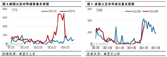 10月24日,“中美可持續(xù)農(nóng)產(chǎn)品貿(mào)易論壇暨貿(mào)易合同簽約儀式”在美國(guó)艾奧瓦州得梅因市舉辦,中美簽署了數(shù)十億美元的采購(gòu)合同。在數(shù)據(jù)上,美國(guó)大豆對(duì)華裝運(yùn)量與去年同期基本持平,與去年走勢(shì)基本一致。而從銷(xiāo)售量上可以看到,2023/24年度整體銷(xiāo)售進(jìn)度明顯快于去年同期,裝船目前還體現(xiàn)不出2023/24年度作物銷(xiāo)售進(jìn)度的快速進(jìn)展,畢竟美豆目前收割進(jìn)度只有85%,而巴西大豆仍有大量舊作沒(méi)有裝出,預(yù)計(jì)后期裝運(yùn)量將開(kāi)始逐步超越去年同期,這將保證全球大豆供應(yīng)的充裕,從而在價(jià)格上對(duì)國(guó)際大豆價(jià)格形成下行壓力。