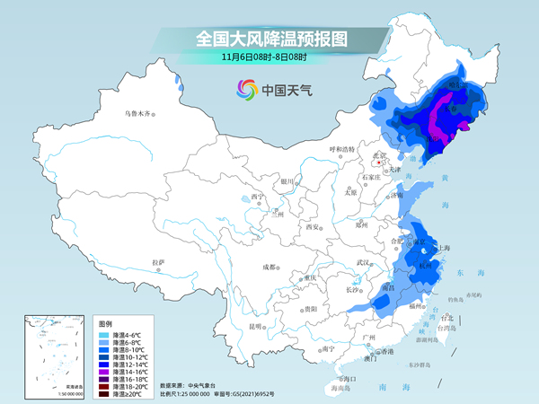 氣溫方面,隨著寒潮東移南下,昨天降溫的區(qū)域主要集中在西北、華北一帶。監(jiān)測顯示,西北地區(qū)東部、華北、黃淮、江淮及內(nèi)蒙古中部、遼寧西部等地出現(xiàn)6~12℃降溫,局地降溫14℃以上。