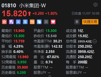 核心科技股普跌,小米集團(tuán)逆勢(shì)漲近2%。消息面上,小米14系列全球首發(fā)第三代驍龍8,目前正式開售一周,小米集團(tuán)創(chuàng)辦人兼董事長(zhǎng)雷軍表示,小米14銷量已超過(guò)百萬(wàn)部,但缺貨嚴(yán)重,集團(tuán)正拼命催單。