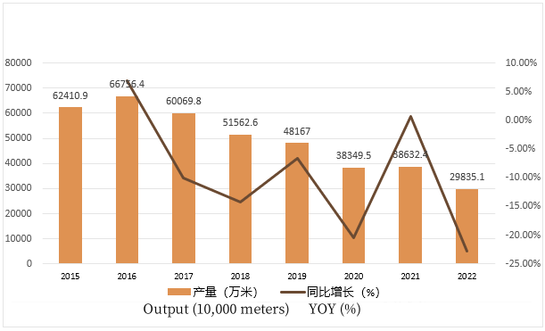 數(shù)據(jù) | 2015-2022年中國(guó)蠶絲及交織機(jī)織物(含蠶絲≥30%)產(chǎn)量統(tǒng)計(jì)