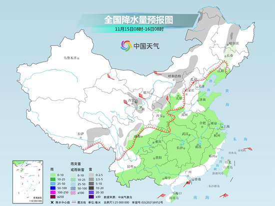 預(yù)計(jì)今明兩天,我國西北地區(qū)的雨雪還會(huì)繼續(xù)向東發(fā)展,其中,新疆阿勒泰地區(qū)、塔城地區(qū)及沿天山地區(qū)、甘肅祁連山山區(qū)等地局地有大雪。未來三天,江南、華南等地的陰雨會(huì)出現(xiàn)一個(gè)短暫“調(diào)休”,但西南地區(qū)東部至廣西一帶依然雨水頻繁;15日,受新一股冷空氣影響,長江以南降雨還會(huì)再度發(fā)展增多;16日起,隨著冷空氣南下,南方近期多陰雨的局面宣告結(jié)束,屆時(shí)全國大部都將無明顯降水,天氣趨于平靜。