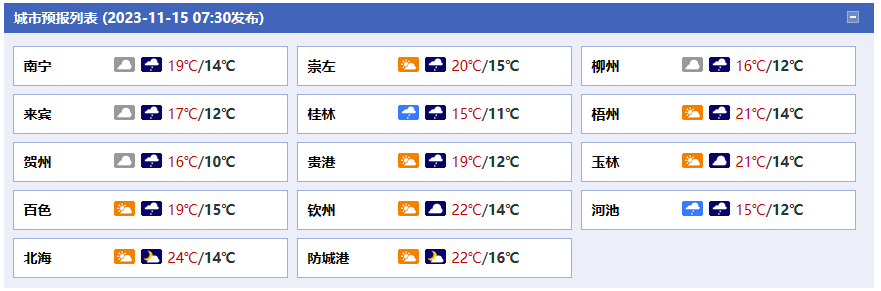 廣西:今天全區(qū)陰天有小雨 明起全區(qū)天氣轉(zhuǎn)好