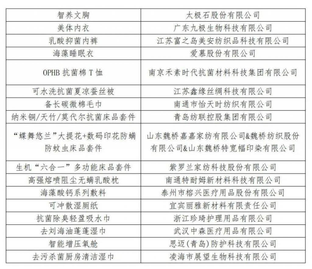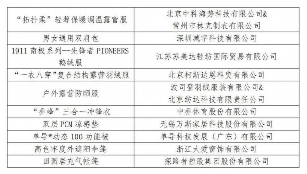 1.2023年度十大類紡織創(chuàng)新產(chǎn)品十大精品獲選產(chǎn)品及單位名單