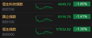 11月16日消息,港股三大指數高開低走,截至收盤,恒生指數(17832.818, -246.18, -1.36%)跌1.36%,報17832.82點,恒生科技指數(4049.72, -76.15, -1.85%)跌1.85%,國企指數跌1.41%。盤面上,核心科技股漲跌不一,小米集團跌超6%,網易、阿里巴巴跌超2%,快手漲3%,京東集團績后漲近2%;汽車股部分上漲,華晨中國漲超5%;醫(yī)藥外包概念股跌幅居前,藥明生物(47.75, -2.95, -5.82%)跌近6%;生物技術板塊多數下挫,亞盛生物跌超7%,康寧杰瑞制藥回彈漲近6%;體育用品股下跌,李寧(23.6, -1.25, -5.03%)跌超5%;煤炭股漲幅居前,龍頭中國神華(25.2, 0.35, 1.41%)漲超1%;半導體、互聯(lián)網醫(yī)療、電子零件、SaaS等板塊跌幅明顯。