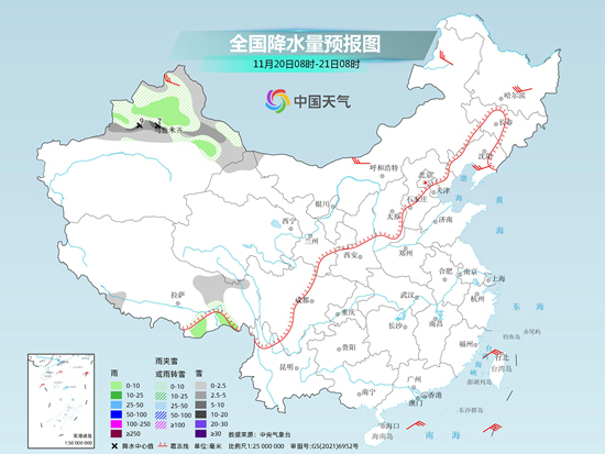 具體來看,今天新疆北部和東部、西藏東南部、甘肅西北部等地部分地區(qū)有小雪或雨夾雪,其中,新疆沿天山地區(qū)和伊犁河谷等地部分地區(qū)有中到大雪(5~9毫米)。