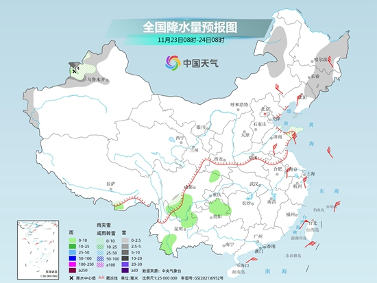 今天,隨著寒潮主體南下,上述地區(qū)的降雪天氣將明顯縮減,其中內蒙古東北部、黑龍江中東部、吉林中東部、新疆北疆西部和伊犁河谷、南疆西部高海拔地區(qū)以及山東半島北部等地部分地區(qū)有小到中雪或雨夾雪,其中,新疆伊犁河谷局地有大雪。陜西南部、四川盆地東北部和南部、貴州中北部、云南東北部和西南部等地部分地區(qū)有小雨。
