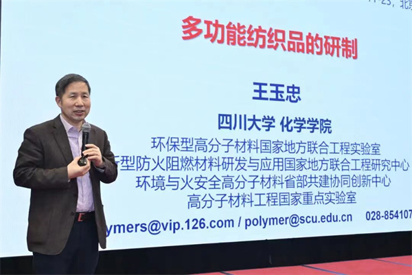中國工程院院士、四川大學教授王玉忠在主題為“多功能紡織品的研制”的報告中對纖維紡織品在國民經(jīng)濟發(fā)展中的支柱作用進行了闡述,圍繞推進軍民兩用功能紡織品核心技術攻關和提升自主創(chuàng)新,詳細介紹了多功能阻燃不熔滴聚酯及其纖維特性、本征阻燃尼龍纖維、紡織品的表面處理多功能化、高耐候耐腐蝕超雙疏阻燃棉織物、高耐候超疏水/油人體輻射熱管理面料、基于短鏈含氟烷基的防水防油織物涂層、耐水洗超疏水導電織物傳感器、高耐久抗結(jié)冰防污芳綸織物、高性能多孔電磁吸波材料、高性能電磁屏蔽材料等方面內(nèi)容。 圖片 圖片 圖片 圖片 陸軍工程大學呂緒良教授,軍事科學院系統(tǒng)工程研究院李晨明高工,中航復合材料有限責任公司沈超研究員,中國空間技術研究院高鴻研究員,軍事科學院防化研究院栗麗副研究員等嘉賓分別就信息化條件下軍事偽裝、智能紡織品發(fā)展及軍事應用、樹脂基復合材料、紡織品與航天器結(jié)構(gòu)、核生化防護服前沿技術等議題作學術報告。