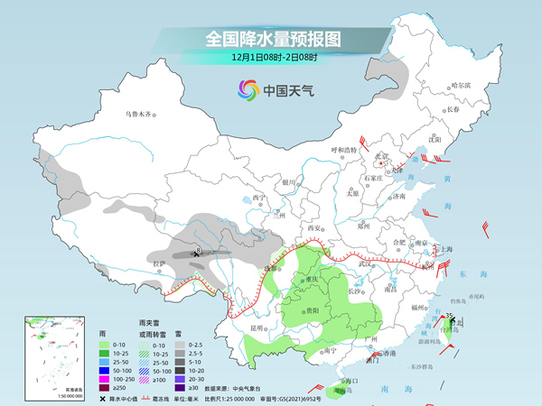 未來三天,我國雨雪總體不多,且強度較弱,以小雨雪為主。西藏、青海南部等地將會有小雪,西南地區(qū)東部、華南多陰雨天氣。
