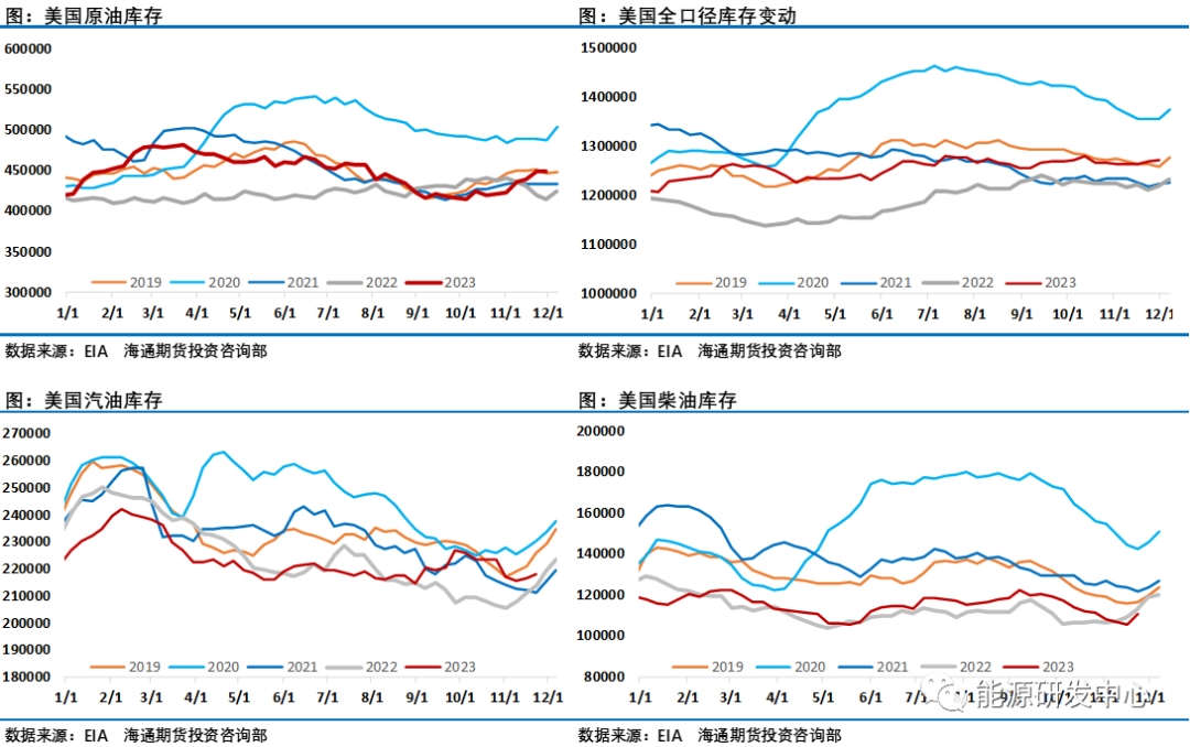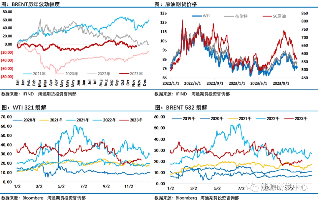通過跟蹤各大機(jī)構(gòu)平衡表可以看出,進(jìn)入四季度后原油市場供需缺口明顯收窄,EIA數(shù)據(jù)顯示原油市場庫存持續(xù)回升,這也讓投資者格外關(guān)注歐佩克+會在11月底的第36屆歐佩克+部長級會議上達(dá)成什么樣的減產(chǎn)方案來維護(hù)市場。而11月30日會議結(jié)束后油價從高點(diǎn)一度大跌超5%,顯示了這次會議結(jié)果不能讓人滿意。就像三方機(jī)構(gòu)睿咨得評價此次部長級會議的結(jié)果是該集團(tuán)的主要成員國沙特阿拉伯的喜憂參半的勝利。積極的方面是會議結(jié)果顯示歐佩克+成員國們各自宣布在明年一季度期間“自愿”減產(chǎn)220萬桶/日,雖然局勢混亂且內(nèi)部分歧明顯,在沙特努力下,還是贏得了一些歐佩克+核心成員國的支持,新的臨時自愿減產(chǎn)措施延長到2024年一季度以化解供應(yīng)過剩壓力,這緩解了一季度原油市場大幅過剩的這一大利空。隱患是非洲成員國堅持自己市場份額的立場這一內(nèi)部分歧沒有解決,安哥拉石油部長拒絕了歐佩克分配的減產(chǎn)配額。該集團(tuán)再次不得不依靠個別成員國的自愿減產(chǎn)以實(shí)施臨時減產(chǎn)協(xié)議,而不是單方面商定在更廣泛的歐佩克+集團(tuán)削減,這絕對不是團(tuán)體內(nèi)部團(tuán)結(jié)一致的好跡象。