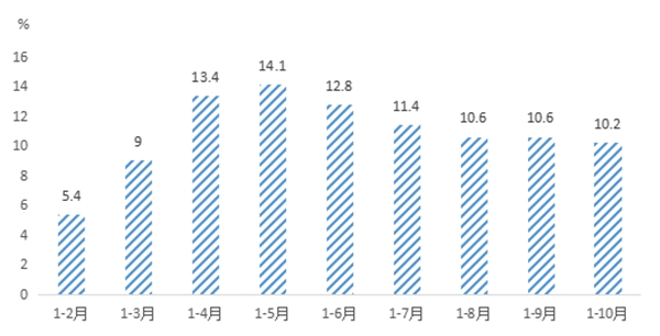 國(guó)內(nèi)終端紡織品消費(fèi)增速放緩。據(jù)國(guó)家統(tǒng)計(jì)局?jǐn)?shù)據(jù),1-10月份,限額以上服裝、鞋帽、針紡織品類(lèi)零售額同比增長(zhǎng)10.2%,增幅較1-9月份收窄0.4個(gè)百分點(diǎn),高于社會(huì)消費(fèi)品零售總額6.9%的增速;實(shí)物商品網(wǎng)上穿類(lèi)商品零售額同比增長(zhǎng)7.6%,增幅較1-9月份收窄2.0個(gè)百分點(diǎn),低于全國(guó)網(wǎng)上零售額11.2%的增速。