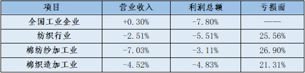 規(guī)上棉紡織企業(yè)利潤(rùn)總額同比增速