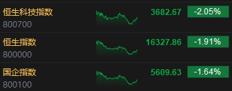 12月5日消息,港股三大指數(shù)低開低走,截至收盤,恒生指數(shù)(16327.859, 0.00, 0.00%)跌1.91%,報(bào)16327.86點(diǎn),恒生科技指數(shù)(3682.67, 0.00, 0.00%)跌2.05%,國(guó)企指數(shù)跌1.64%。盤面上,聯(lián)想集團(tuán)(8.87, 0.00, 0.00%)挫逾10%領(lǐng)跌科指成分股;核心科技股普跌,網(wǎng)易跌超5%,小米集團(tuán)跌近3%,騰訊控股(308.8, 0.00, 0.00%)、百度集團(tuán)、美團(tuán)跌超2%;汽車股漲跌不一,蔚來漲超2%,零跑汽車(38.25, 0.00, 0.00%)跌超2%;電子零件板塊跌幅靠前,舜宇光學(xué)科技(65.2, 0.00, 0.00%)跌超5%;餐飲股齊跌,海底撈(13.82, 0.00, 0.00%)跌近6%;醫(yī)藥外包概念股多數(shù)下跌,藥明生物(30.35, 0.00, 0.00%)跌超8%;東方甄選(32.1, 0.00, 0.00%)文旅即將上線,東方甄選高漲超8%。