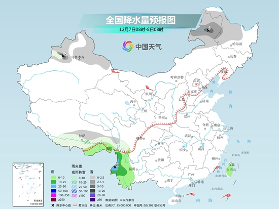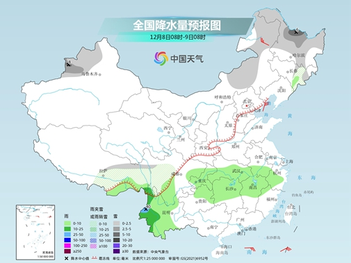 明天,內(nèi)蒙古東部、東北地區(qū)東部和北部、新疆北部、西藏南部和東部、西南地區(qū)北部等地部分地區(qū)有小雪或雨夾雪,其中,黑龍江西北部和中部、新疆伊犁河谷等地部分地區(qū)有中到大雪。西藏東南部、江淮西部、江漢大部、江南中西部和北部、西南地區(qū)東部和南部等地部分地區(qū)有小到中雨,其中,云南西南部等地部分地區(qū)有大雨。