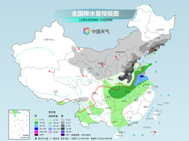 后天,內(nèi)蒙古大部、西北地區(qū)中東部、東北地區(qū)中南部、華北、黃淮北部、西藏東南部、川西高原南部等地部分地區(qū)有小到中雪或雨夾雪,其中,遼寧東部、吉林東南部、天津南部、山西南部、河北中南部、山東西北部、河南中北部等地部分地區(qū)有大到暴雪,其中河南北部局地大暴雪(20~25毫米)。陜西南部、黃淮中南部、江淮北部、江漢、四川盆地東北部、重慶東北部、湖南北部等地部分地區(qū)有中到大雨,其中,山東南部、江蘇北部等地局地有暴雨(50~60毫米)。