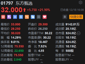 東方甄選大漲近22%。消息面上,12月18日下午消息,新東方教育科技 (集團(tuán)) 有限公司發(fā)布通知:任命董宇輝為新東方教育科技集團(tuán)董事長文化助理,兼任新東方文旅集團(tuán)副總裁。12月18日凌晨,東方甄選官方微博發(fā)布消息稱,俞敏洪和董宇輝18日20時(shí)將合體直播。據(jù)發(fā)布的宣傳海報(bào)顯示,俞敏洪為新東方創(chuàng)始人、東方甄選CEO;董宇輝成為東方甄選高級(jí)合伙人。