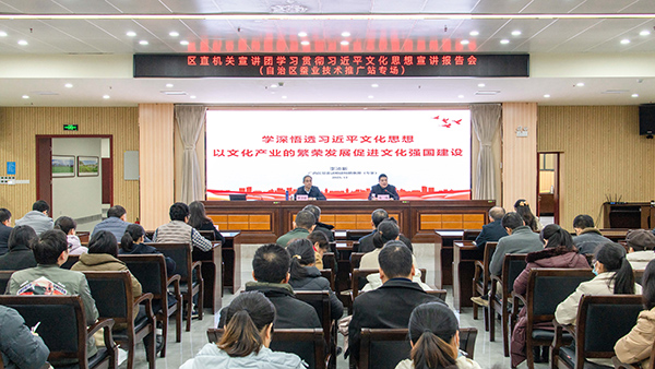 為深入學(xué)習(xí)貫徹習(xí)近平文化思想和習(xí)近平總書記關(guān)于宣傳思想文化工作的重要指示精神,12月19日上午,自治區(qū)黨委區(qū)直機(jī)關(guān)工委在自治區(qū)蠶業(yè)技術(shù)推廣站舉辦區(qū)直機(jī)關(guān)宣講團(tuán)學(xué)習(xí)貫徹習(xí)近平文化思想宣講報告會。自治區(qū)黨委講師團(tuán)特聘教授(專家)、廣西廣播電視臺原黨委委員、紀(jì)委書記李沛新作專題宣講報告。自治區(qū)蠶業(yè)技術(shù)推廣站站黨委委員、副站長韋偉主持報告會。