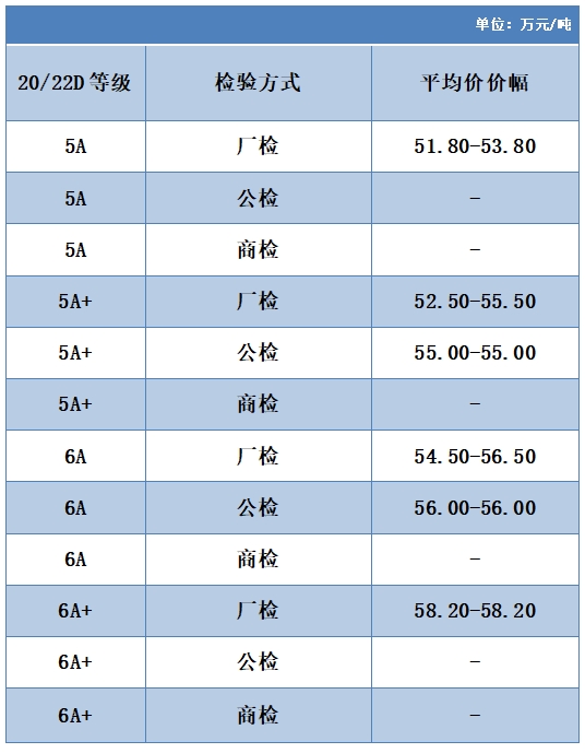本周高品位生絲協(xié)作單位成交價格區(qū)間