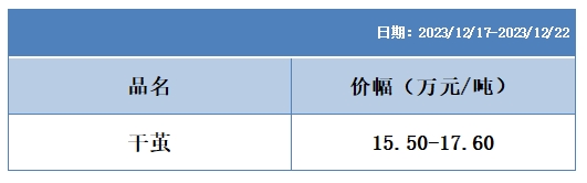 根據(jù)本周蠶繭報價按照指數(shù)方案形成的基準(zhǔn)品價格區(qū)間