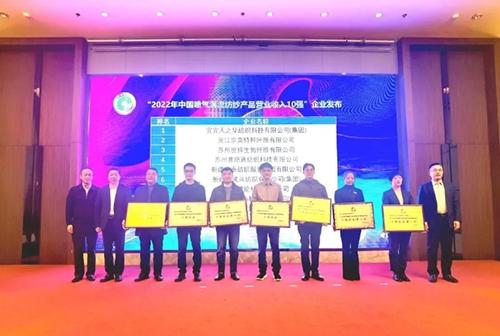 董奎勇、王益冰、沈向東為“2022年中國噴氣渦流紡紗產(chǎn)品營業(yè)收入10強”企業(yè)授牌