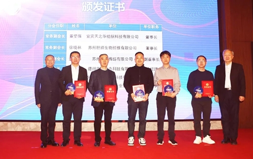 吳江高新區(qū)管委會副主任、中國東方絲綢市場管委會主任張建華在致辭中表示,近年來,盛澤積極引導(dǎo)企業(yè)轉(zhuǎn)型升級,通過“智改數(shù)轉(zhuǎn)”提升產(chǎn)品附加值,京奕特纖、世祥生物、星京澤、英特斯等企業(yè)紛紛瞄準(zhǔn)渦流紡“黃金賽道”,先后引入渦流紡生產(chǎn)線,用全鏈條創(chuàng)新的“底色”,擦亮高質(zhì)量發(fā)展的“成色”。盛澤將以中國棉紡織行業(yè)協(xié)會噴氣渦流紡行業(yè)分會成立為契機(jī),鼓勵更多企業(yè)進(jìn)入噴氣渦流紡領(lǐng)域,支持企業(yè)加大研發(fā)投入,不斷開發(fā)新產(chǎn)品,拓展紗線應(yīng)用領(lǐng)域和應(yīng)用場景,為產(chǎn)業(yè)轉(zhuǎn)型、行業(yè)升級提供“盛澤案例”。
