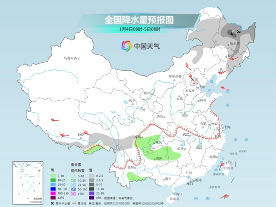 昨天,我國(guó)大部地區(qū)降水稀少,僅內(nèi)蒙古東北部、黑龍江西部、新疆北部等地部分地區(qū)出現(xiàn)小雪。