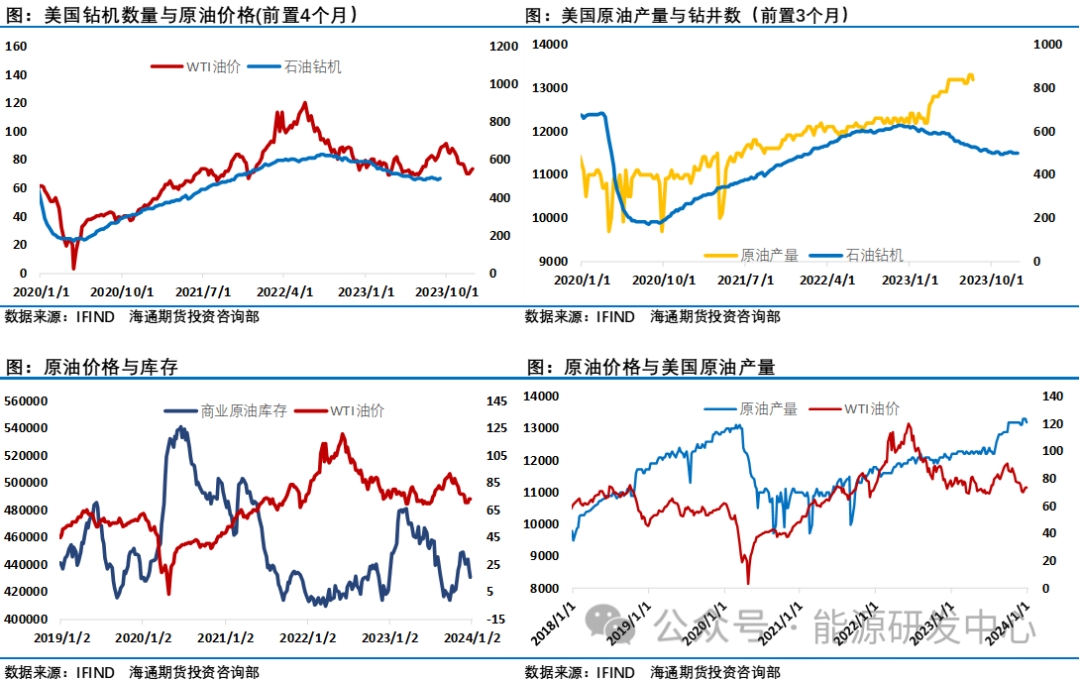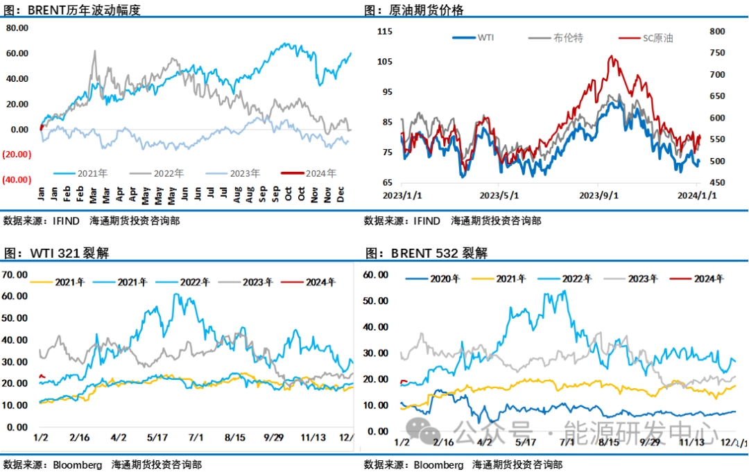 新年第一周油價(jià)收漲,WTI 收于73.81美元/桶,本周累計(jì)上漲超3.01%。SC原油累計(jì)周五夜盤后一周漲幅同樣超3%,收于561.2元/桶。不過這期間油價(jià)的波動(dòng)可謂感人,連續(xù)多日日內(nèi)振幅高達(dá)4%,多重因素影響下油價(jià)上演頻繁折返行情,讓投資者疲于招架。這或許預(yù)示了2024年原油的走勢(shì)對(duì)參與其中的投資者來說將相當(dāng)有挑戰(zhàn)。過去幾天在大宗商品整體表現(xiàn)較弱時(shí),油價(jià)表現(xiàn)相對(duì)強(qiáng)勢(shì)。紅海事件的演繹,伊朗蘇萊曼尼紀(jì)念場(chǎng)合的爆炸事件讓中東不穩(wěn)定的地緣局勢(shì)升溫是推動(dòng)油價(jià)反彈的重要原因,但影響油價(jià)的因素絕不僅是這些,宏觀層面同樣對(duì)市場(chǎng)風(fēng)險(xiǎn)偏好影響明顯,對(duì)美聯(lián)儲(chǔ)降息預(yù)期的變化讓美元反彈,并壓制了風(fēng)險(xiǎn)資產(chǎn)的表現(xiàn)。另外歐佩克在新年即發(fā)表言論試圖提振市場(chǎng)信心。多重影響因素作用下油價(jià)出現(xiàn)了大幅波動(dòng)局面。