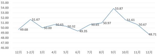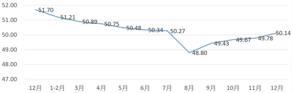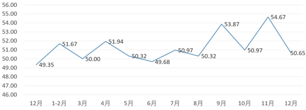 從管理者景氣指數(shù)來(lái)看,總指數(shù)中,12月管理者景氣指數(shù)為50.16,比11月的52.17下降2.01個(gè)百分點(diǎn);經(jīng)營(yíng)環(huán)境指數(shù)為49.03,比11月的52.33下降3.30個(gè)百分點(diǎn)。