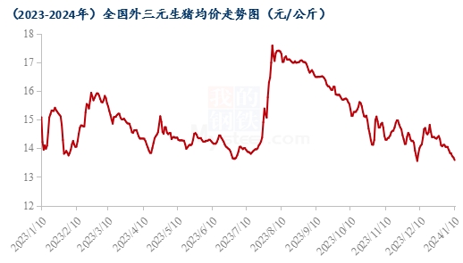 據(jù)Mysteel數(shù)據(jù)監(jiān)測,截至24年1月10日,全國外三元生豬出欄均價為13.59元/公斤,較昨日下跌0.09元/公斤。全國豬價延續(xù)跌勢,豬病影響下的中部地區(qū)供給縮量情況兌現(xiàn)力度有限,南方產(chǎn)能過剩、標豬貨源持續(xù)沖擊中北部市場,規(guī)模場對年后預期愈發(fā)悲觀、出欄計劃前置情況增加,供給端壓力仍空前巨大;而終端需求無有效跟進,在南方腌臘逐漸完結后,白條市場蕭條情況愈發(fā)凸顯,屠企單量下降,加之市場短期看漲氛圍不強,養(yǎng)戶亦無惜售情緒,預計明日行情或延續(xù)弱勢運行。重點關注規(guī)模場出欄節(jié)奏及市場豬源流向情況。