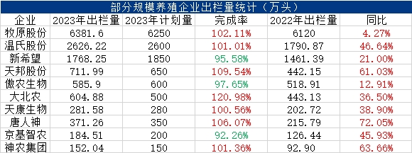 據(jù)市場公開消息整理,2023年部分規(guī)模養(yǎng)殖場出欄年度目標基本完成,僅少數(shù)豬企接近完成(完成率超9成)。盡管全年養(yǎng)殖行業(yè)虧損持續(xù),企業(yè)資金壓力不減,不過同比2022年出欄量數(shù)據(jù)來看,規(guī)模企業(yè)產(chǎn)能增幅明顯,部分增幅已超50%。上表10家豬企2023年生豬總銷量超過1.3億頭,接近全國生豬總出欄量的20%。生豬行業(yè)規(guī)?;M程不斷加快,尤其是龍頭企業(yè)近年來產(chǎn)能快速擴張,行業(yè)產(chǎn)能集中化程度提升。當前生豬行情偏弱整理,不過規(guī)模豬企產(chǎn)能調(diào)減幅度有限,甚至部分上市豬企產(chǎn)能不降反升,主要是行業(yè)內(nèi)卷、企業(yè)競爭程度加劇造成的。隨著近年來散養(yǎng)戶的不斷淘汰,規(guī)模場面臨著巨幅的虧損及高額的資金壓力,仍普遍采取逆勢穩(wěn)產(chǎn)增產(chǎn)的策略。