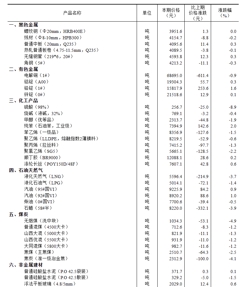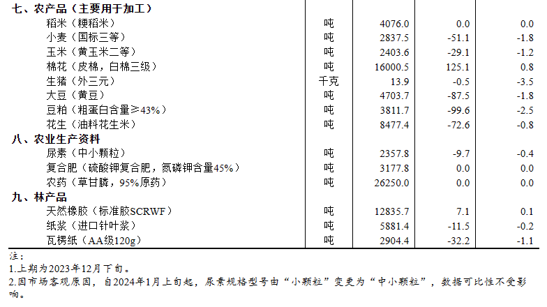 2024年1月上旬流通領(lǐng)域重要生產(chǎn)資料市場價格變動情況