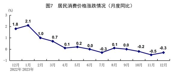 全年居民消費價格(CPI)比上年上漲0.2%。分類別看,食品煙酒價格上漲0.3%,衣著價格上漲1.0%,居住價格持平,生活用品及服務價格上漲0.1%,交通通信價格下降2.3%,教育文化娛樂價格上漲2.0%,醫(yī)療保健價格上漲1.1%,其他用品及服務價格上漲3.2%。在食品煙酒價格中,豬肉價格下降13.6%,鮮菜價格下降2.6%,糧食價格上漲1.0%,鮮果價格上漲4.9%??鄢称泛湍茉磧r格后的核心CPI上漲0.7%。12月份,居民消費價格同比下降0.3%,環(huán)比上漲0.1%。全年工業(yè)生產者出廠價格比上年下降3.0%;12月份同比下降2.7%,環(huán)比下降0.3%。全年工業(yè)生產者購進價格比上年下降3.6%;12月份同比下降3.8%,環(huán)比下降0.2%。