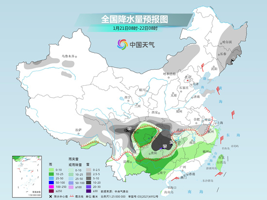 根據(jù)預報,今天,南方強降雨還將持續(xù)“打卡”;而在北方,昨天夜間開始,降雪再度發(fā)展增多,預計今天到21日,北方地區(qū)還將自西向東再迎降雪。