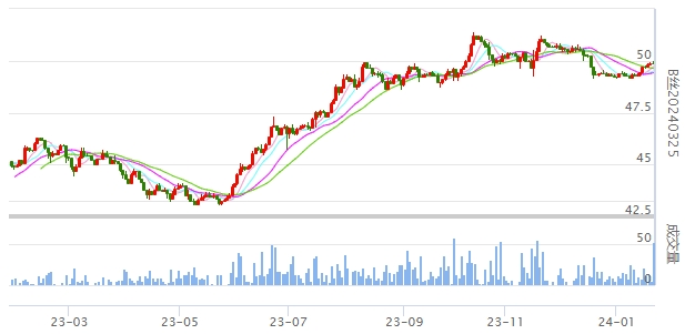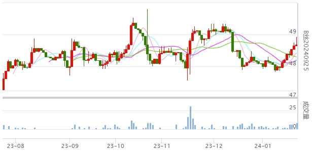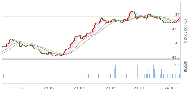 今日(2024年01月22日,周一)中國繭絲綢交易市場生絲指數(shù)上漲0.22%收于4948.28點。B絲(商檢4A級生絲):240125合約上漲0.15萬元報收于49.86萬元;240325合約報平收于49.89萬元;240925合約上漲0.03萬元報收于48.69萬元。
