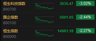 1月22日消息,港股三大指數(shù)高開低走,截至收盤,恒生指數(shù)(14961.181, -347.51, -2.27%)跌2.27%,跌破15000點(diǎn),報(bào)14961.18點(diǎn),恒生科技指數(shù)(3035.47, -94.45, -3.02%)跌3.02%,國企指數(shù)跌2.44%,三大指數(shù)再創(chuàng)階段新低。盤面上,科網(wǎng)股普跌,美團(tuán)跌4.73%,百度、騰訊跌超3%,京東跌近2%;內(nèi)房股領(lǐng)跌,華潤置地(20.5, -2.55, -11.06%)跌超11%;汽車股齊挫,零跑跌超12%;蘋果概念股低迷,丘鈦科技(3.1, -0.20, -6.06%)跌超6%;消費(fèi)電子、互聯(lián)網(wǎng)醫(yī)療、影視娛樂等板塊跌幅靠前。