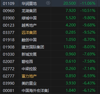 內(nèi)房股領(lǐng)跌,華潤置地跌超11%。摩根大通發(fā)表研究報(bào)告指,對(duì)內(nèi)地房地產(chǎn)板塊維持謹(jǐn)慎立場,預(yù)計(jì)今年銷售量、新開工量及竣工量按年下降10%。城中村改造屬于緩解措施,雖然可支持建設(shè),但不一定能刺激銷售。然而,新開工率改善可能是復(fù)蘇的指標(biāo)。該行表示,在內(nèi)房股中,首選仍然是華潤置業(yè)、中國海外發(fā)展(10.74, -0.66, -5.79%)和華潤萬象生活(20.8, -1.40, -6.31%)等國企,將龍湖的評(píng)級(jí)由增持下調(diào)至中性,目標(biāo)價(jià)由22.5港元削至9港元。