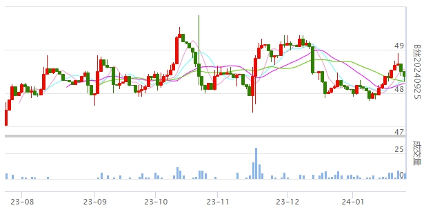 今日(2024年01月24日,周三)中國繭絲綢交易市場(chǎng)生絲指數(shù)下跌0.10%報(bào)4933.54點(diǎn)。B絲(商檢4A級(jí)生絲):240325合約上漲0.06萬元報(bào)收于49.92萬元;240925合約下跌0.12萬元報(bào)收于48.39萬元;250325合約下跌0.09萬元報(bào)收于48.60萬元。