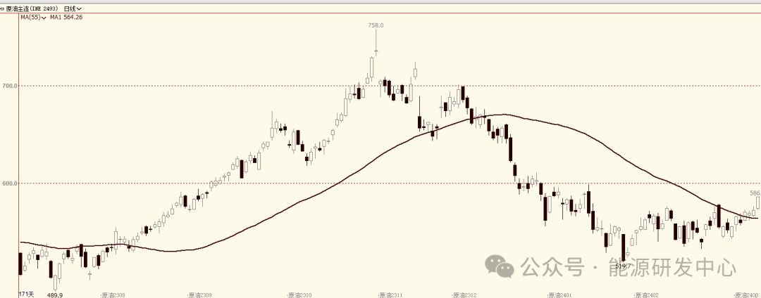 周四油價(jià)大漲近3%,在關(guān)鍵的阻力關(guān)口壓制下經(jīng)過了一個(gè)多月了的盤整蓄勢之后,油價(jià)用長陽大漲的方式完成了對(duì)關(guān)鍵阻力的突破,并繼續(xù)刷新2024年高點(diǎn),這樣的表現(xiàn)符號(hào)我們對(duì)油價(jià)運(yùn)行節(jié)奏的預(yù)判。本周隨著油價(jià)震蕩中逐漸抬升重心,市場情緒轉(zhuǎn)暖跡象明顯,雖然油價(jià)節(jié)奏仍然是震蕩攀升,但其細(xì)節(jié)表現(xiàn)已經(jīng)是明顯強(qiáng)于之前幾周的混沌格局。SC原油在本周持倉量回升同時(shí),主力合約較遠(yuǎn)期月差結(jié)構(gòu)也轉(zhuǎn)為升水,局勢整體走強(qiáng)。
