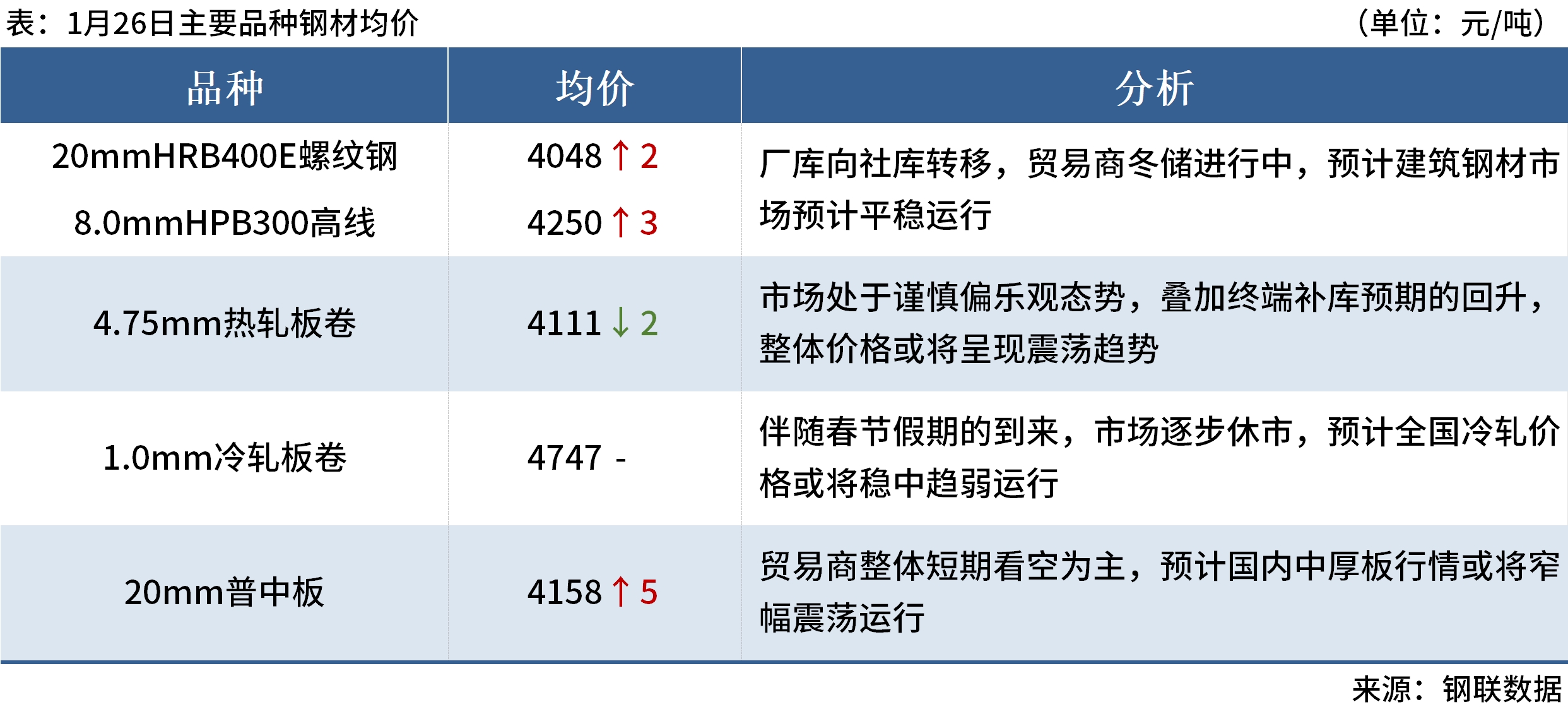 ◎1月26日,全國主港鐵礦(1003, 14.50, 1.47%)石成交73.05萬噸,環(huán)比減35.1%;237家主流貿(mào)易商建筑鋼材成交5.71萬噸,環(huán)比減22.5%。