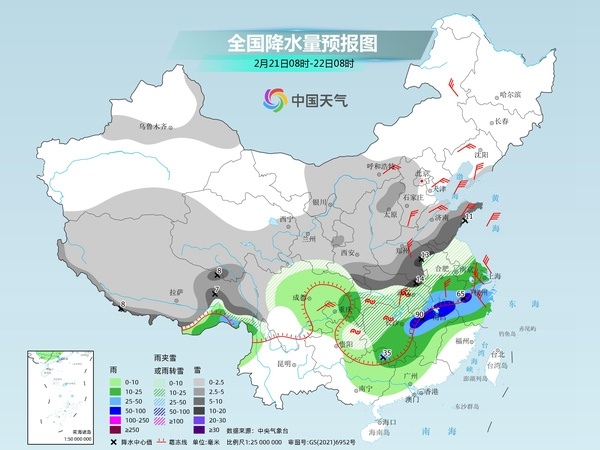 受寒潮影響,今明兩天(2月20日至21日),中東部雨雪進(jìn)入最強(qiáng)時(shí)段,華北、黃淮等地部分地區(qū)將遭遇暴雪,江南等地部分地區(qū)有暴雨。同時(shí),未來四天,中東部氣溫將繼續(xù)下降,湖南、貴州、廣西等地部分地區(qū)累計(jì)降溫幅度可達(dá)20℃以上,多地將上演冷暖大逆轉(zhuǎn)。