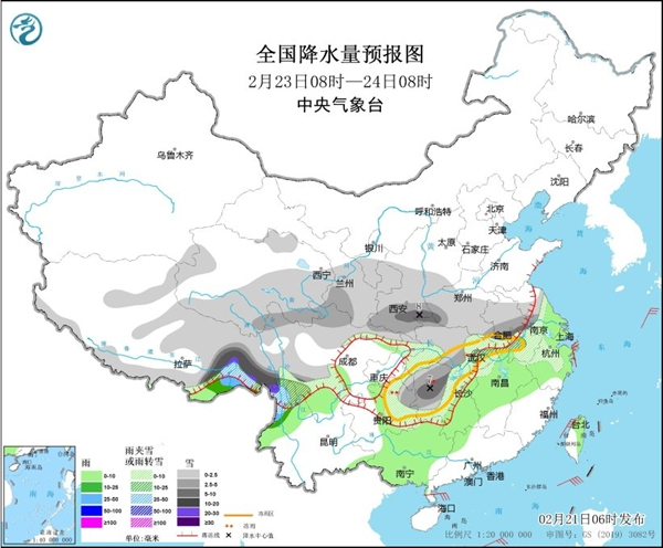 中央氣象臺(tái)預(yù)計(jì),今天,新疆南部、西北地區(qū)中東部、內(nèi)蒙古中西部、華北中西部、黃淮、江淮、江漢、青藏高原大部等地部分地區(qū)有小到中雪或雨夾雪,其中,河南中東部、山東南部、蘇皖北部、湖北北部及西藏東部等地部分地區(qū)有大到暴雪(10~15毫米)。湖北中東部和南部、湖南北部、貴州東部、安徽中部、江蘇北部等地部分地區(qū)有凍雨。江南中北部等地部分地區(qū)有中到大雨,其中,江西北部、浙江西部、安徽南部等地部分地區(qū)有暴雨(50~90毫米)。