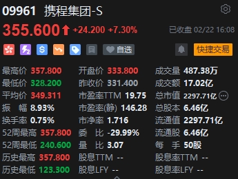 旅游股集體上漲,攜程集團漲超7%。2月22日,攜程集團公布其2023年第四季財報和全年財務(wù)業(yè)績。第四季度,公司凈營業(yè)收入103億元,2023全年凈營業(yè)收入445億元,同比分別增長105%、122%。全年來看,攜程2023年收入為445億元,同比上升122%,已超疫情之前2019年的總收入;歸母凈利潤99億元,同比增加607.14%,業(yè)績超出市場預(yù)期。