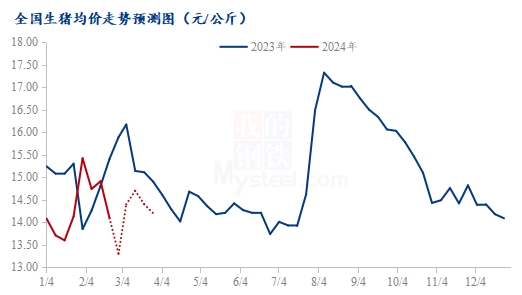 從需求端來看,2月中下旬屠企量價水平較年前及去年同期均有所不如,截止到2024年2月26日樣本屠企宰量為99038頭,較節(jié)前正常水平150000-160000頭/天,仍存在約34%-38%的缺口,可見節(jié)后需求疲弱態(tài)勢之凸顯。不過,隨著元宵后,學(xué)校開學(xué)、餐飲復(fù)工,屠企宰量增幅逐步擴(kuò)大、消費(fèi)回暖表現(xiàn)不斷向好,3月屠企宰量回歸正常水平板上釘釘,但由于無節(jié)假日或消費(fèi)旺季支撐,整體消費(fèi)向好表現(xiàn)或相較一般。