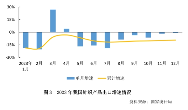 2023年,針織行業(yè)面臨的外部環(huán)境復(fù)雜嚴峻,新冠肺炎感染疤痕效應(yīng)、地緣政治沖突、大國博弈加劇等導(dǎo)致海外需求萎縮、內(nèi)生動力不足、國際訂單轉(zhuǎn)移,行業(yè)運營質(zhì)效承壓。但全行業(yè)頂住壓力,攻堅克難,創(chuàng)新求變,千方百計化解不利因素,行業(yè)整體回升向好,營收、利潤、出口均出現(xiàn)邊際改善。