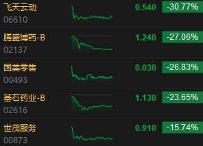 多只個(gè)股遭調(diào)出深港通下的港股通標(biāo)的證券名單,股價(jià)暴跌。消息面上,深交所公告,因恒生綜合大型股指數(shù)、中型股指數(shù)、小型股指數(shù)實(shí)施成份股調(diào)整,根據(jù)《深圳證券交易所深港通業(yè)務(wù)實(shí)施辦法》的有關(guān)規(guī)定將調(diào)出國(guó)美零售(0.03, -0.01, -26.83%)、基石藥業(yè)-B(1.13, -0.35, -23.65%)、世茂服務(wù)(0.91, -0.17, -15.74%)等,自2024年3月4日起生效。